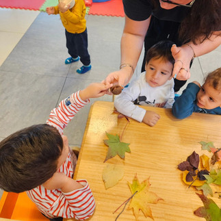 I bambini hanno allestito l'asilo con zucche, castagne, foglie...insieme alle educatrici☺️